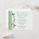 invitación al bautismo verde Bonito, con adorable encaje verde como cinta en el borde izquierdo. El verde bordado como gráficos de flores corren por el lado izquierdo junto al borde de la cinta y dos mariposas completan esta elegante invitación al bautismo. Estilo de fuente Personalizar, color, material de tarjeta a lo que más te gusta. Es una forma encantadora de invitar a amigos y familiares, para presenciar el bautismo de sus pequeños.