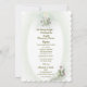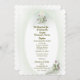 Celebre un precioso hito con la invitación a bautizar a este elegante chica, con un suave fondo verde y blanco, delicados acentos florales y una cruz de oro. Diseñada con escritura refinada y tipografía de sari, esta plantilla incluye texto de personalizable para el nombre de su hijo, detalles de la iglesia, lugar de recepción e información de RSVP. Perfecto para una celebración clásica, atemporal y llena de fe, esta invitación al bautismo es fácil de personalizar y de imprimir.