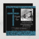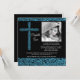 Comience bien su evento con nuestro bello y elegante bautismo fotográfico / invitación a bautizar. La invitación presenta una cruz azul turquesa vintage en un suelo negro con bandas de desplazamiento antiguas. Fácil de personalizar, sólo tienes que añadir tu foto y la información del evento y estás listo para ir.