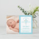 Esta moderna invitación a la cristiandad, el bautismo, cuenta con una cruz de color azul y verde y una zona de fotos. Se puede personalizar para la ocasión cristiana especial de su hijo.