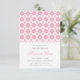 Esta invitación moderna y sencilla al bautismo o a la cristiandad presenta un patrón geométrico rosa con una cruz entrelazada. Ideal para la celebración religiosa de una bebé, se puede personalizar con el nombre de su hijo y los detalles del evento.