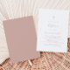 Esta sencilla invitación al bautismo minimalista de oro rosa es perfecta para un bautismo o bautizo moderno. El diseño, sencillo y elegante, presenta una tipografía de escritura clásica y elegante en oro rosa.