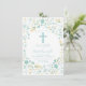 Esta invitación al personalizable de bautismo de bonito (bautizado) presenta un marco colorido de flores pastel ilustradas y una cruz a juego. El nombre, la fecha, la ubicación y los detalles de su evento se pueden personalizar para su ocasión religiosa especial. La combinación de colores es azul, amarillo y verde y podría ser ideal para un niño o para un chica especial. Se pueden agregar varios nombres si se desea.