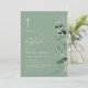 escritura simple color de agua verde personalizado foto tarjeta de invitación de bautismo. El texto y los colores se pueden editar.