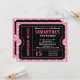 Invitaciones para boletos, rosa y negro con un bonito fondo de starburst en rosa y blanco. Ideal para cualquier chica de edad, adolescente o mujer invitando a fiestas de cumpleaños femeninas. Personalizar con la información de su fiesta. ¡Hace una gran invitación única para cualquier ocasión! Diseñado para parecerse a un verdadero boleto de entrada con falsos recortes y falsedades perforadas, esta invitación audaz y divertida es ideal para una fiesta de cumpleaños a los 15 dulces quince o cualquier edad!