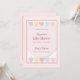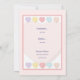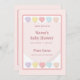 Un ilustracion gráfico de los corazones de una ducha de chica rosa estilo caramelo, por la artista/diseñadora Charmaine Paulson en una invitación las 5 horas del día, los 7 días de la semana. El cuadro de invitación tiene plantillas de texto para su personalización. ©2011charmainepaulson