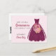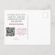 La moderna postal de invitación a la fiesta de Quinceañera incluye baile floral y purpurina con fondo rosa pálido. detalles del personalizar, incluido el código QR