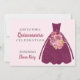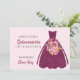 La moderna invitación a la fiesta de Quinceañera incluye baile floral y purpurina con fondo rosa pálido. detalles del personalizar, incluido el código QR