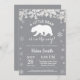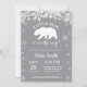 Invitación a copo de nieve de Baby Shower Polar Bear Winter. Copo de nieve blanco. Invitación a Baby Shower de chico o Chica. Invitación Baby Shower de feriado de invierno. Fondo gris. Para una mayor personalización, haga clic en el botón "Personalizar" y utilice nuestra herramienta de diseño para modificar esta plantilla.