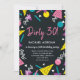 Envíe esta divertida y colorida invitación de cumpleaños y para su fresca, radical, bodásica, tubular y impresionante fiesta de cumpleaños Dirty Thirty. El patrón de los años 80 hace un tema divertido y retro para el chica o niño de cumpleaños milenarios.