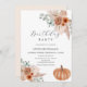 Celebre con estilo con esta invitación a la fiesta de cumpleaños del Boho Bompkin. Con sus toallas de agua rústicas, flores de otoño y acentos boho, este elegante diseño es perfecto para celebrar el cumpleaños de una mujer, cenar fiesta o reunirse en temporada. Personalice los detalles de su fiesta con una invitación única y elegante que le da el tono a su evento especial. Ideal para cumpleaños, fiestas de boho rústicas y fiestas inspirados en el otoño.