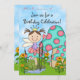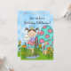 Princesa de hadas de color marrón agudo con rana, estanque, setas y flores Invitación a la fiesta de cumpleaños para Chicas.