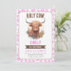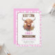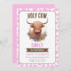 ¡Ensillar para una fiesta de cumpleaños del Chica de la 'vaca santa en las tierras altas'! Esta encantadora invitación captura el capricho de la vaca Highland, haciéndolo perfecto para una granja, cowgirl o celebración de temática occidental. Personalizar con los detalles del evento y prepárate para el lasso en la diversión. ¡Sí! Será una celebración de cumpleaños para recordar.