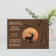 Invitaciones de la fiesta de cumpleaños para los Cazadores de Cerfs con ciervos al atardecer y silueta de montaña y pino. Haga de su cumpleaños preferido Deer Hunter un regalo especial.