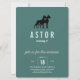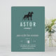 Gran ilustracion de la pareja Dane sobre invitaciones de fondo verde.