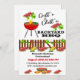 Invite a sus huéspedes a una barbacoa en el patio trasero con esta encantadora invitación a visitar la valla cubierta de piquetes con sandía fresca, parrilladas en barbacoa y maíz por invitación de la turba.