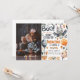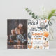 Invitación al cumpleaños de Halloween Spooky Bat Invitación a la fiesta para celebrar tu cumpleaños de Halloween. Invite a la gente a su fiesta con este diseño increíble. El gato lindo que sale de la calabaza con pancarta de halloween, lunas y murciélagos es una gran combinación para los niños cumpleaños!