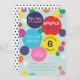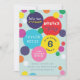 ¡Ven a celebrar con esta colorida invitación a saltar, rebotar, reír y jugar! Bolas, trampolín y casa de rebote