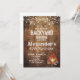 Plantilla de cumpleaños de la hoguera trasera con fondo rústico de madera, luces de cuerda y un gráfico de hoguera. Para acceder a las herramientas de edición avanzadas, por favor vaya al enlace "Personalizar" y luego "hacer clic en personalizar más adelante".