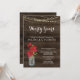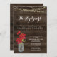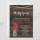 Poinsettia de acuarela pintada a mano y tarro de albañil complementado con un fondo rústico de madera, luces de cuerda y una hermosa caligrafía.