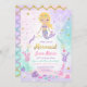 Invitación de cumpleaños de sirena al oro rosa bajo la invitación de fiesta en el mar. Todos los diseños son ©PIXELPERFECTIONPARTYLTD