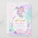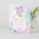 Invitación de cumpleaños de sirena al oro rosa bajo la invitación de fiesta en el mar. Todos los diseños son ©PIXELPERFECTIONPARTYLTD