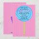 Empieza tu celebración con esta adorable y adorable invitación de cumpleaños a los chicas. Es un gran tragaluz azul brillante sobre un fondo de rayas oscuras y rosas claras. Vea los muchos otros colores y diseños de esta línea. También los muchos otros productos como camisetas, tarjetas de agradecimiento, franqueo y muchos más. © Ilustraciones JW