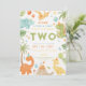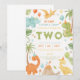 Celebra el gran día de tu pequeña con esta colorida invitación de cumpleaños a los dinosaurios de las acuarelas. El diseño es lúdico y cuenta con dinosaurios verdes, naranjas y azules en gorras fiestas con globos, hojas de palma y un volcán para una divertida vitalidad prehistórica. Perfecto para los cumpleaños de los niños y los fiestas con temática de dino, esta invitación puede ser personalizada con el nombre, edad y detalles del evento de su hijo. Un diseño luminoso y alegre que da un toque de alegría al momento.