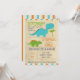 La invitación para el cumpleaños de este niño a los dinosaurios incluye dos lindos dinosaurios azules y verdes y una palmera en un fondo de papel envejecido. La parte superior y la base del diseño están decoradas con un estilo de rayas naranja, azul intenso y beige. También he agregado algunos simples divisores marrones al diseño. Quería crear nuevas invitaciones para niños de dinosaurios de colores brillantes y lindos porque han sido populares en la tienda y quería que los clientes tuvieran más opciones. Esta invitación forma parte de una nueva colección que consta de pizarras e invitaciones estándar. La invitación de este chico para la fiesta de cumpleaños de los dinosaurios es más apropiada para un fiesta de 1er, 2do o 3er cumpleaños. Está listo para ser personalizado.