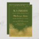 Una elegante invitación al Olive Green y al cumpleaños dorado que incluye el polvo de confeti dorado en la parte superior y el oro en la parte inferior.