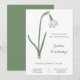 Una invitación al cumpleaños elegante y sencilla con un ilustracion de flores de nevada botánica en tonos pastel (Galanthus nivalis). Se pueden personalizares de textos (en tonos verdes y grises) y utilizarlos para un fiesta de limpieza, un boda, una jubilación, una despedida de soltera, etc.