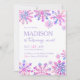 Invitación a los cumpleaños de invierno con copos de nieve rosa y púrpura de color acuático y tipografía elegante