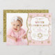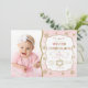 Invitación al cumpleaños de Snowflake en Onederland. ¡Esta invitación rosa y dorada es perfecta para tu pequeña fiesta de cumpleaños!