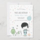 Super lindo ilustrado caprichosos, invitación de cumpleaños de un niño con el pelo negro sosteniendo un globo rodeado de naturaleza. Todos los detalles son de personalizable, mientras que también están disponibles los diferentes tipos de pelo de color y los fiestas correspondientes. Vea a continuación para esta colección. © Mini Impresiones Moi