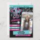 Celebra tu estrella adolescente con esta invitación temática musical. Añade tu foto y detalles del fiesta. Negro, Azul y Rosa.