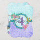 Sirena de color de agua dulce, conchas, tridentes, balanzas y estepas Invitación al cumpleaños bebé con edad y nombre y texto Personalizado en morado, Aqua y Verde azulado con burbujas y acentos Purpurinas de oro. Un divertido diseño de sirena femenina con texto personalizado.
