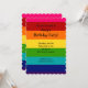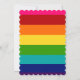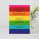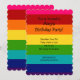 Invitación al cumpleaños del arcoiris con un patrón de arcoiris rosa, rojo, naranja, amarillo, verde, azul y púrpura
