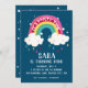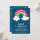 Una invitación super tierna y moderna sobre el arcoiris para la fiesta de cumpleaños de tu hijo.