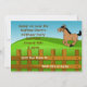 Invitaciones a la fiesta de cumpleaños de un niño divertido hechas con coloridos gráficos de un caballo personalizado galopando a través de una valla verde en el campo. Personalizar el texto que se ajuste a las necesidades del fiesta de su hijo. Cambie también el color, el tamaño y el estilo del texto si lo desea.