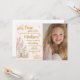 Acoger la máxima celebración real con esta invitación al cumpleaños del castillo y la princesa heredera. Con un encantador castillo rosa coronado por una corona de oro, elegantes florecientes y lujosos detalles de diseño, esta invitación es perfecta para un cumpleaños de princesa de cuento de hadas. Personalice fácilmente el nombre, la edad y los detalles del fiesta de su hijo. Ideal para fiestas de princesas con temática de castillo, cumpleaños real y mágicas celebraciones de chicas. Disponible en versiones impresa y digital. ¡Deja que tu princesa brille como realeza!
