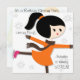 Un chica de patinaje sobre hielo de cabello negro en las invitaciones de cumpleaños temáticas de patinaje que son fáciles de personalizar con la información de la fiesta de cumpleaños de su hijo!