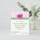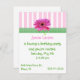 Invitación de los chicas Bonitos hecha con rayas rosas y blancas en la parte superior bordeada por una cinta de gingham verde y blanca y una margarita gerber rosa. Personalizar todos los campos de texto según sus necesidades, con estilo de texto, color y tamaño.