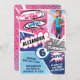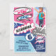 La invitación a la fiesta de cumpleaños de chicas inspirada en el libro de historietas de superhéroes fue diseñada para parecerse a un libro de historietas audaz y colorido. Las audaces burbujas de voz se colocan alrededor de la invitación con palabras y textos de estilo cómico para crear el ambiente de la historieta. La invitación se divide en diferentes secciones coloridas de rosa, azul, azul claro y gris para crear una acción repleta y emocionante diseño de temas de superhéroes. El diseño presenta un lugar donde se puede colocar la foto de un pequeño superhéroe. El reverso de la invitación presenta un fondo llamativo de color rosa con mitad de tono y una gran carta inicial que crea un logo personalizado de superhéroe. Todos los ilustraciones contenidos en esta divertida y colorida invitación a celebrar la fiesta de cumpleaños de superhéroes del chica son obras de arte originales hechas a mano por Moodthology. Puede personalizar el tamaño del texto, el color del texto, el tipo de letra y el diseño para su preferencia personal de diseño.