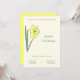 Una elegante y sencilla invitación al cumpleaños amarillo claro con un ilustracion de flores de adobe en tonos pastel (Narcissus pseudonarcissus). Se pueden personalizares de textos (en colores amarillo, verde y gris) y usarlos para un fiesta de limpieza, un boda, una jubilación, una despedida de soltera, etc. Daffodil es la flor de nacimiento de Marzo, la flor de Pisces y Aries y es un significado simbólico de renacimiento, perdón, creatividad, energía y vitalidad.