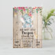 Invitación de cumpleaños del chica elefante. Fondo blanco, flores rosas. Tamaño 5x7. Para pedidos de personalizado, por favor contáctame. Gracias!