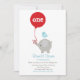 elefante gris azul pastel con globo rojo. Perfecto para una invitación de primer cumpleaños