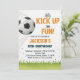 ¡Celebra el gran día de tu goleador con esta invitación de cumpleaños de fútbol! Diseñada con gráficos audaces, elementos futbolísticos dinámicos y fuentes deportivas, esta tarjeta de personalizable es perfecta para los jóvenes aficionados al fútbol y las futuras estrellas. Personalice el nombre, la edad, la ubicación del fiesta y la información de RSVP de su hijo en sólo minutos. Ideal para juegos de patio trasero, fiestas de fútbol o eventos de equipo. Adecuada para niños y chicas, esta invitación de alta calidad inicia la emoción antes del primer silbido. Envío rápido y fácil edición garantizada!