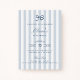 Elegante invitación para cumpleaños de bebé con franjas verticales suaves de color azul y blanco, fuentes sans-serif modernas y un delicado tipo de letra para el nombre del niño. Este diseño, acentuado por un arco encantador, es perfecto para un quinto cumpleaños con un tema fiesta de inspiración marrón, perrito o atemporal.