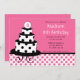 Invitación al cumpleaños del pastel negro, blanco
