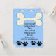 Una linda invitación de cumpleaños perfecta para los niños que aman a los perros. Presenta un hueso en la parte superior y una pata de perro en la parte inferior. El fondo es azul claro.